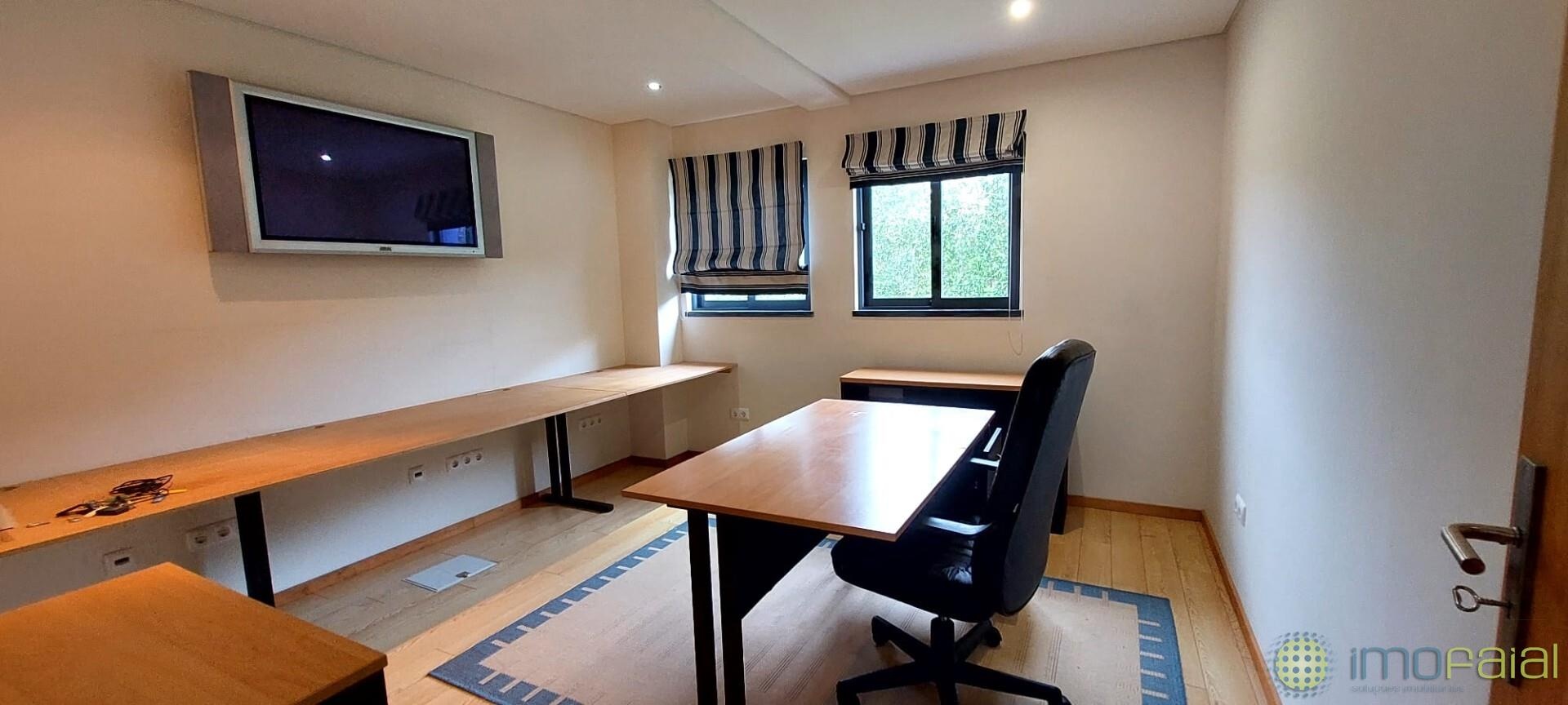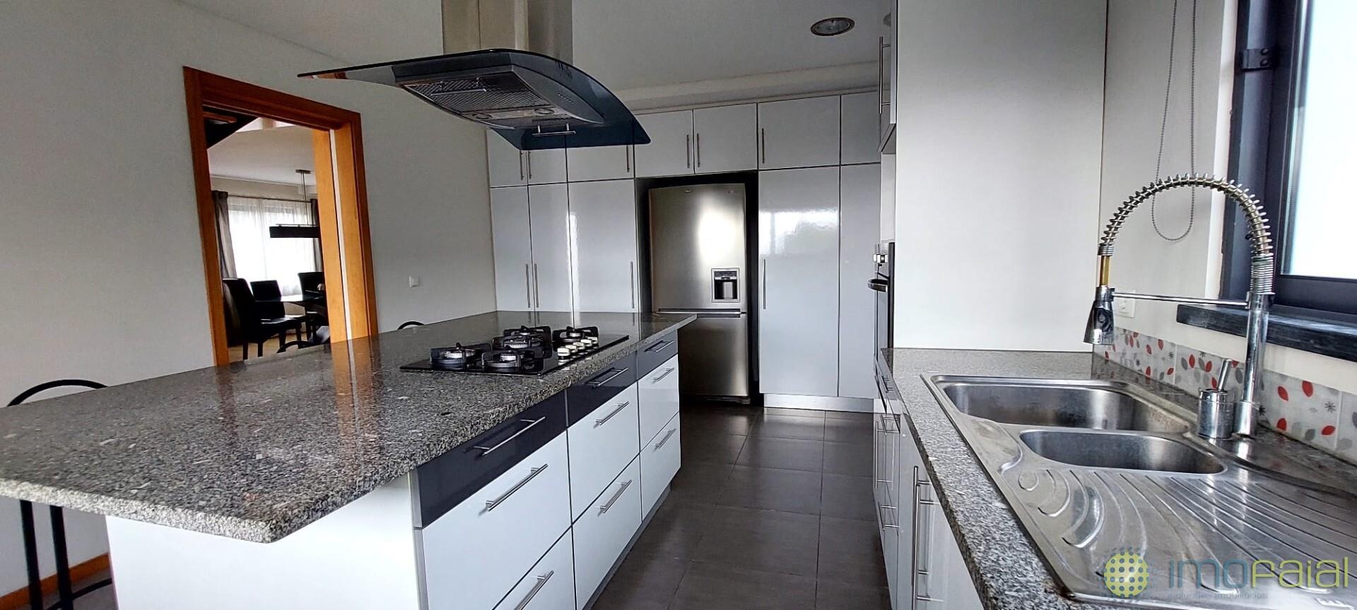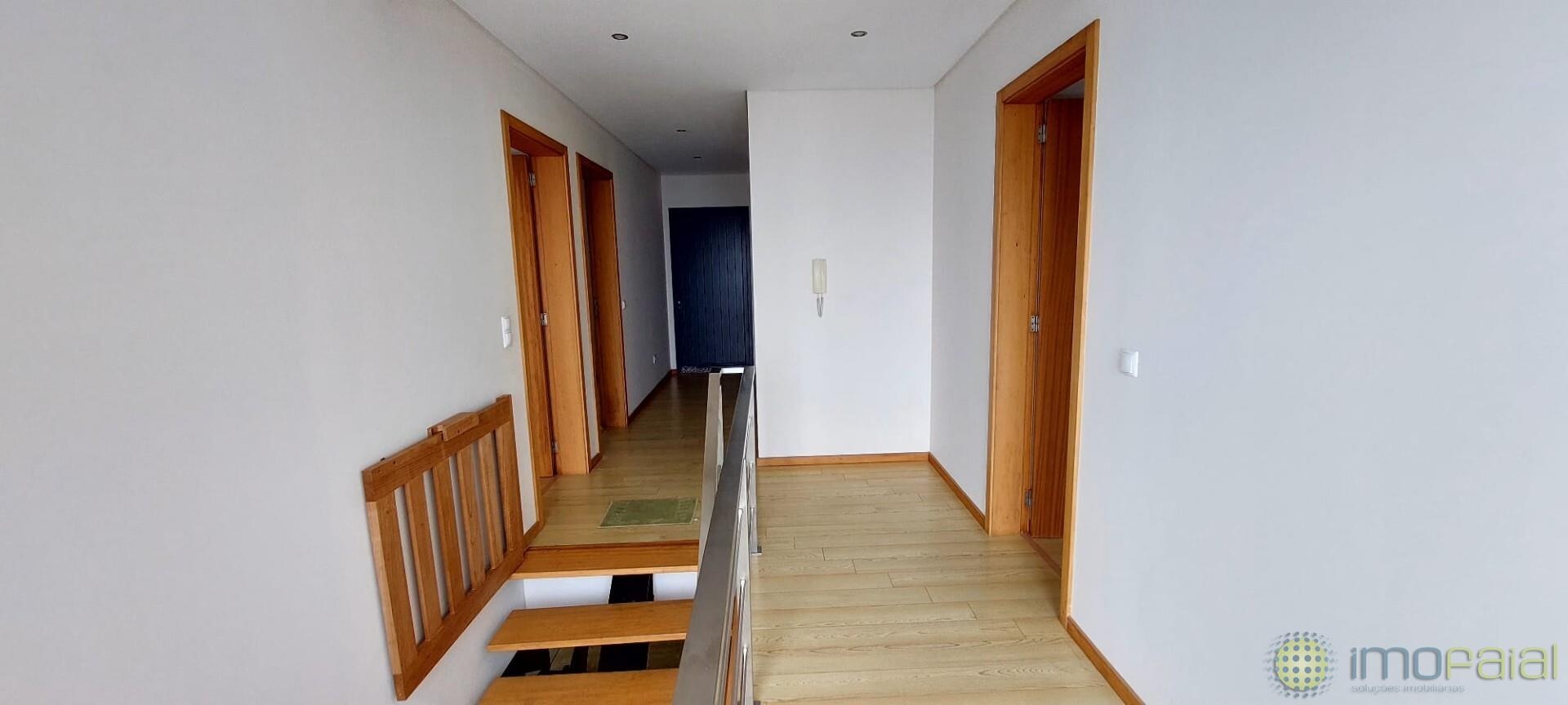 No primeiro piso, encontra uma cozinha espaçosa e totalmente equipada, sala de estar, sala de jantar, um escritório (com possibilidade de conversão em quarto de cama), uma casa de banho e acesso direto a uma ampla garagem, garantindo conforto e funcionalidade no dia a dia.